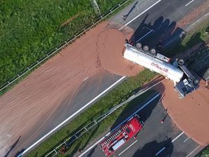 Sebuah truk mengalami kecelakaan tunggal di Tol Dalam Kota KM 13 Tomang arah Grogol. Truk muatan kertas itu terbalik dan sempat melintang di 2 lajur jalan tol.