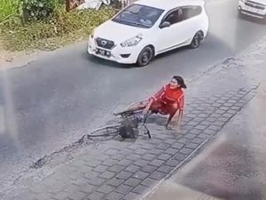 Wanita Naik Sepeda Pura-pura Jatuh Terserempet Mobil Ternyata ODGJ