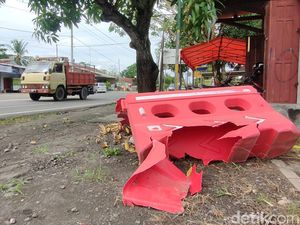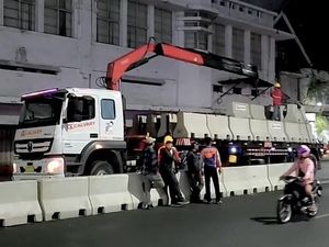 Usai Habis Dibakar Pendemo, Barier Beton Dipasang di Jalan Basra Surabaya