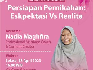 Professional Marriage Coach & Content Creator Nadia Maghfira akan sharing di Kulwap Wolipop, Persiapan Pernikahan: Eskpektasi Vs Realita. Yuk ikutan.